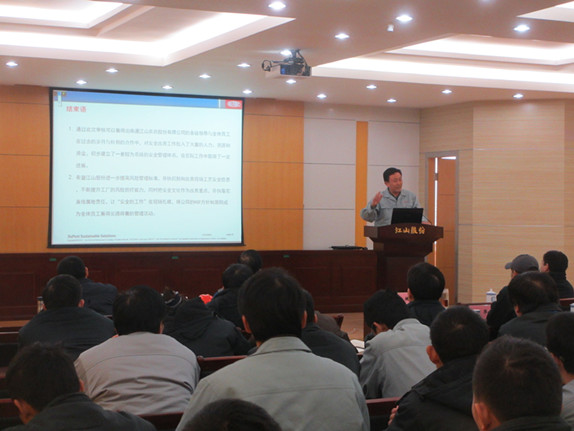 12月12日下午,杜邦安全改善項目年度審核末次會議在江山股份西區6號會議室召開。該公司總經理薛健發表重要講話。