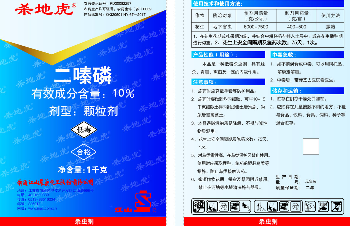 南通江山農藥化工股份有限公司是二嗪磷顆粒劑和二嗪磷乳油在國內獲得登記較早的企業,其中“殺地虎”(10%二嗪磷顆粒劑)是面市較早、市場份額較大的二嗪磷顆粒劑產品,堪稱“引導者”。二嗪磷市場前景看好。可替換被禁限用有機磷類防治地下害蟲市場,如克百威(呋喃丹)、毒死蜱等。也能替換被禁限用有機磷類拌種藥劑市場,如甲拌磷、甲基異柳磷等。另外可作為酰胺類殺蟲劑的有效補充,因為水稻田酰胺類殺蟲劑抗性突起,且對二化螟、三化螟效果不佳。農藥使用要按照規定的用藥量、用藥次數、用藥方法和用藥間隔期施藥,低毒的二嗪磷是可以放心在蔬菜上使用的。