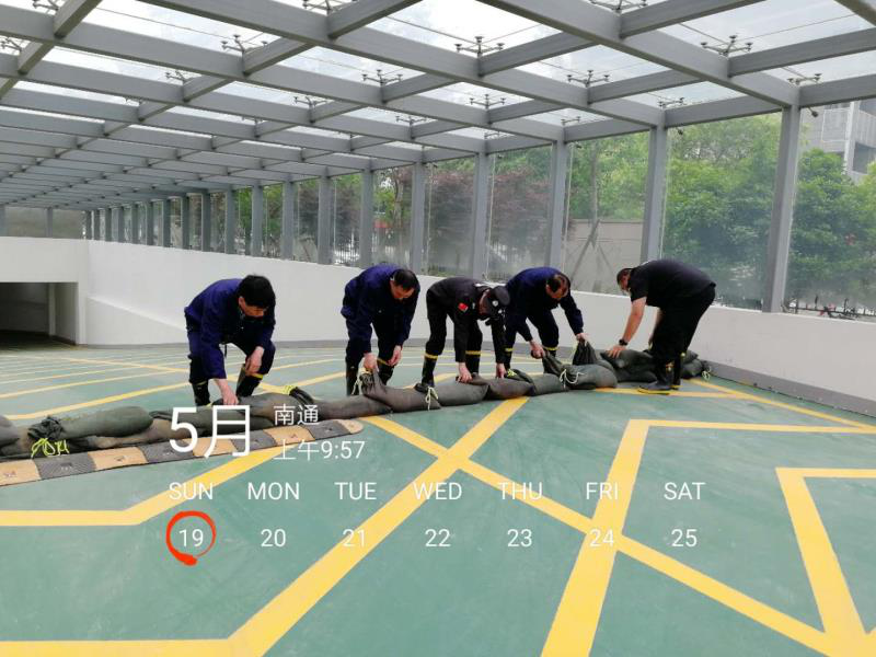 5月19日上午,按照“安全第一,防汛為主、綜合治理”的方針,由產研院資產管理部和南通康源物業共同組織,在園區內進行防汛演練,確保在汛期發生暴雨時,能夠在最短時間內充分發揮安全保障機制的作用,快速、高效、有序地實施救援工作,提高抵御汛情和應對緊急突發事件的能力。 為確保本次防汛演練活動的順利進行,按照項目演練大綱和做好防汛演練工作的相關要求,做了充分的前期準備和細致的分工。整個演練的過程,有條不紊,緊張有序,程序流暢。首先對參與演練的全體人員進行相關的常識培訓,然后由警戒組、搶險組、設備組分別對隔離警示、沙袋擋水、水泵強排等項目進行演練,最后由醫療組對受傷搶險人員進行醫療包扎。