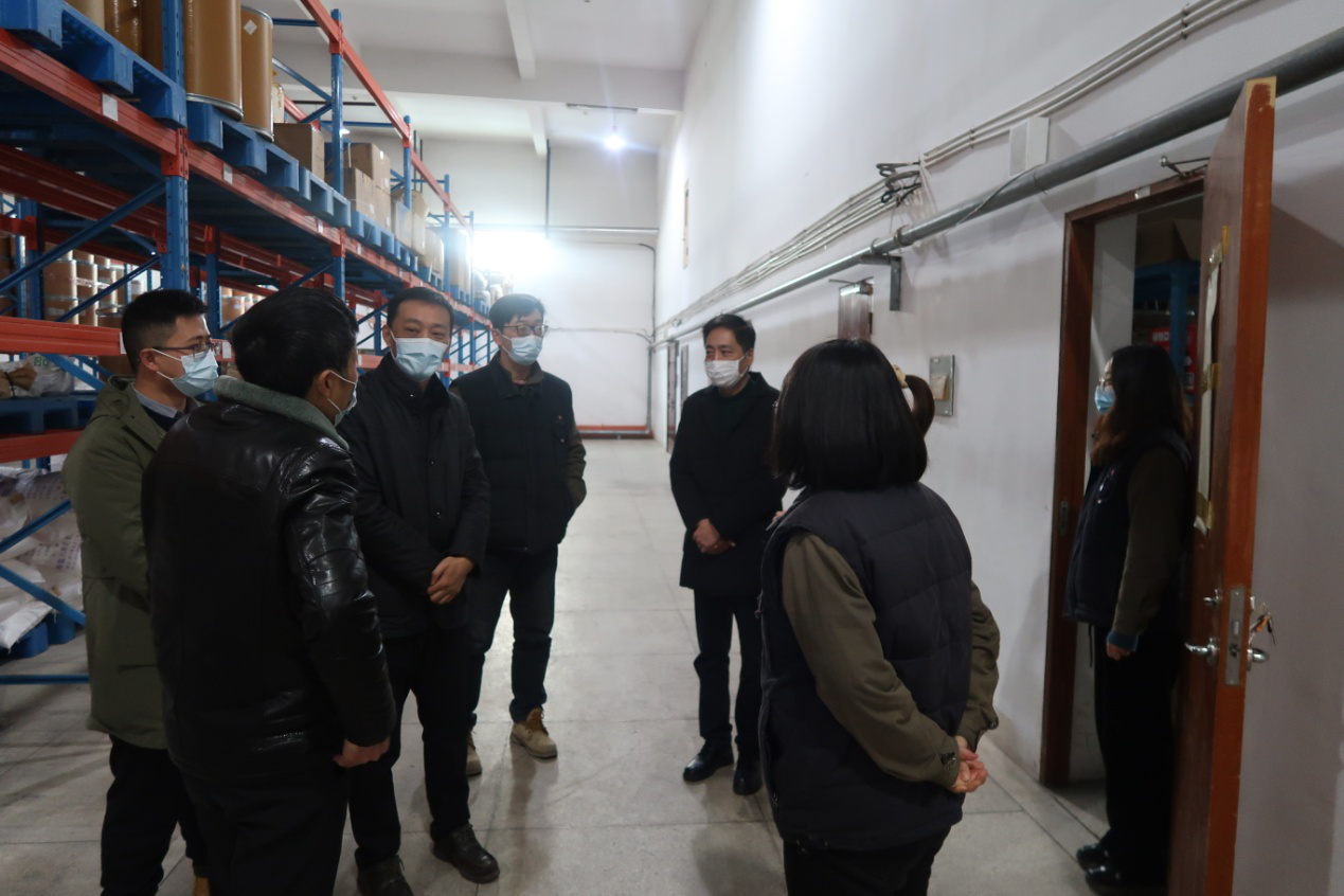 張建一行現場調研了精華防疫物資儲備倉庫、隔離室,詳細了解公司針對外來人員走訪企業的要求與臺賬管理,查看了公司內部員工疫情防控中的體溫監測、離通返通、廠區消殺、防疫物資儲備及上級來文等臺賬資料。張建強調,當前疫情形勢依然嚴峻,我們要嚴格落實上級部門要求,從嚴落實疫情防控各項要求,做好外來人員及本單位員工的雙碼查驗、體溫監測及行蹤軌跡,廠區務必定時定點進行消殺,疫情不容忽視,特別是藥企,不容一絲一毫松懈。他肯定精華疫情防控措施落實到位,臺賬做得全面、工作做得細化。